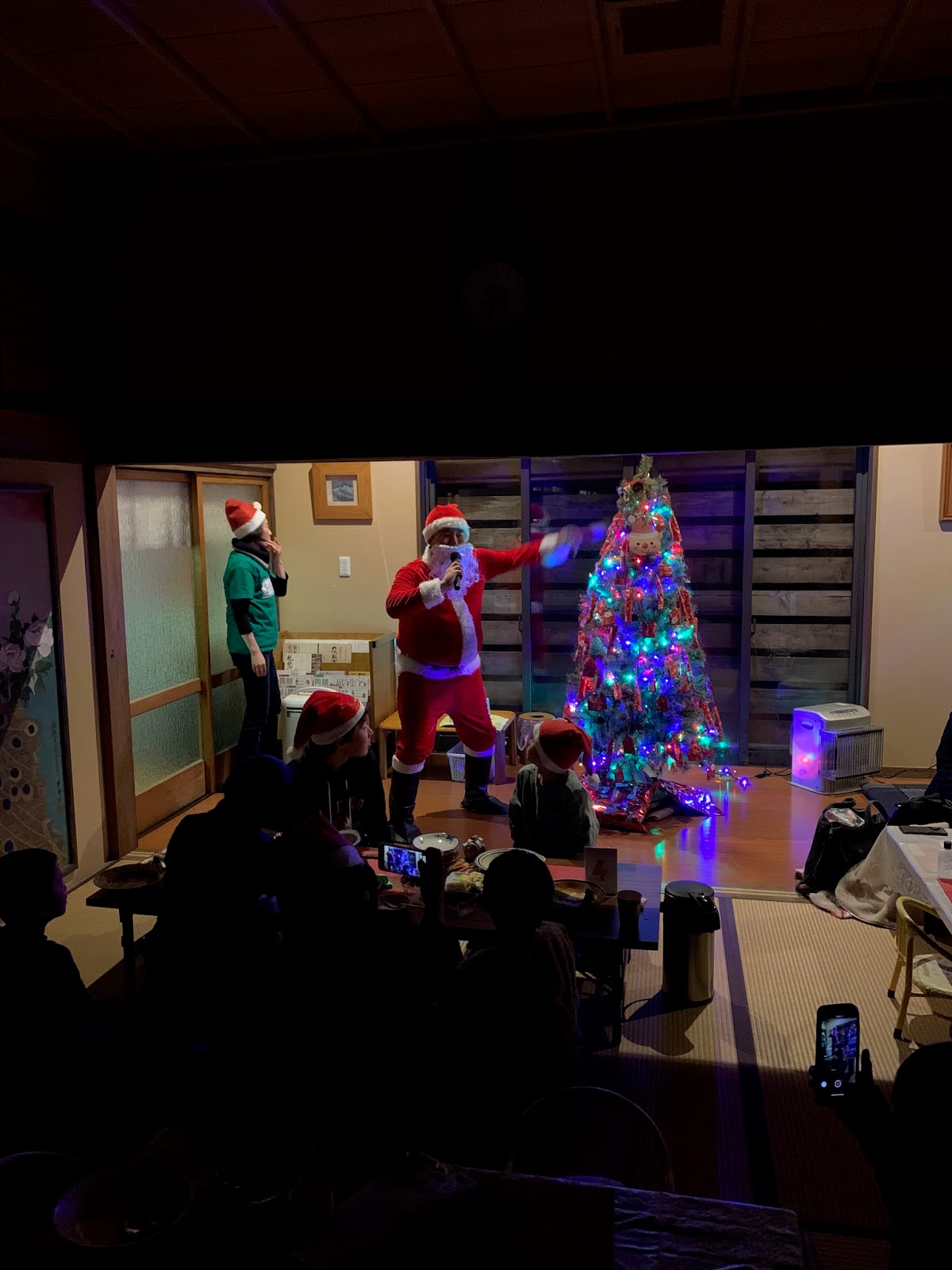 みんなで一緒にいただきます。みんなサンタ仕様です。ここまではいつもどおり。